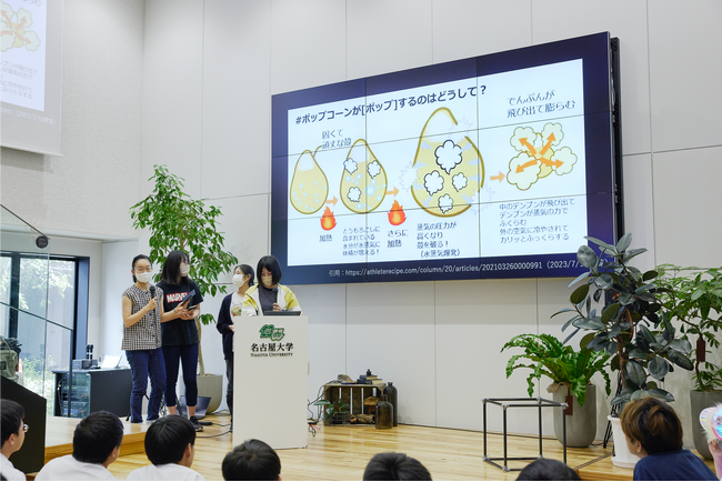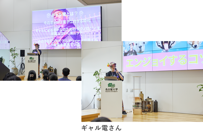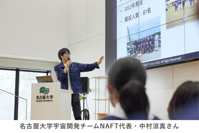 ゲストには環境に配慮した人工土壌「高機能バイオ炭」を活用した次世代の作物栽培システムを開発・販売する名古屋大学発スタートアップの株式会社TOWINGの代表取締役の西田宏平さんや、名古屋大学宇宙開発チームNAFTの2023年度代表・中村涼真さん、電子工作の面白さを広める活動を行っているギャル電さんなど、さまざまな分野で活躍するゲストが登壇し、実践的な説明のほか宇宙や電子工作の面白さについて語られました。参加した高校生達も普段の学校生活の中では学べない知識に目を輝かせながら興味深く聞く様子が印象的でした。