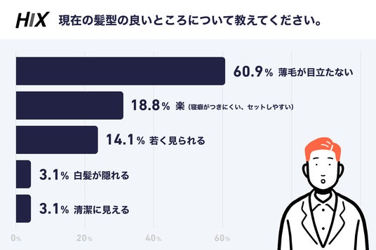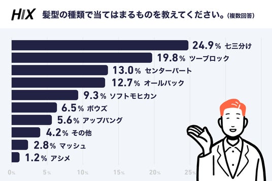 AGA・ヘルスケアブランド「HIX(ヒックス)」を展開する株式会社エムボックス(本社:東京都豊島区、代表:金澤大介、以下:エムボックス)は、HIXユーザーを対象に「髪型に関する意識調査」を実施しました。また、調査結果を元に、現役美容師おすすめの薄毛が気にならない髪型もご紹介します。