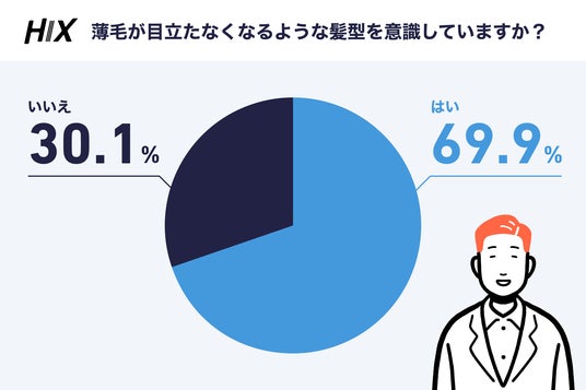 ・調査対象のうち約7割が「薄毛が目立たなくなるような髪型」を意識している