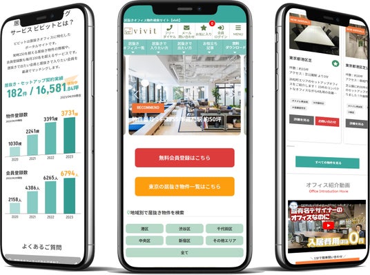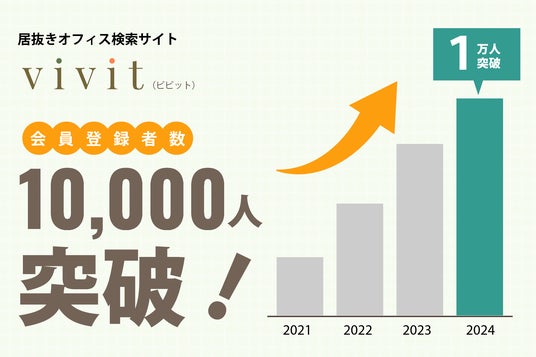 株式会社スリースター(本社:東京都港区、代表取締役:小川雅義)が運営する「居抜きオフィス検索サイト【vivit】」および「セットアップオフィス検索サイト【RAKNA】」の登録会員数が、このたび10,000名を超えました。