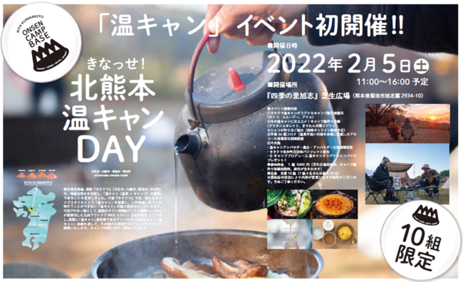 熊本県北地域、通称『キタクマ』(玉名市、山鹿市、菊池市、和水町)は、地域活性化を目指し、「温キャン(温泉× キャンプ)の聖地」であることを宣言しました。