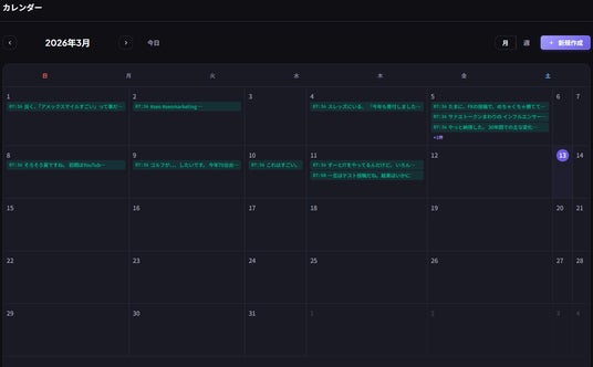 月間カレンダー上で投稿予定を俯瞰でき、配信計画の見直しや管理を行いやすくします。