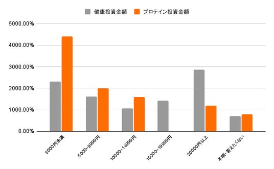 健康投資は2倍以上に増えている反面、プロテインへの投資は月5,000円未満と控えめな結果に