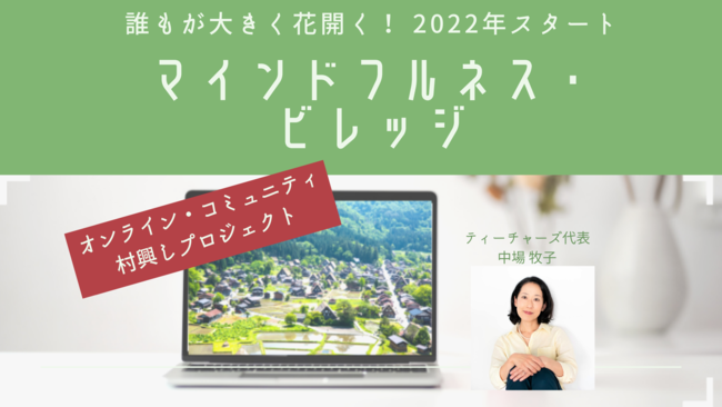 「暮らしの中のマインドフルネス」を伝えるティーチャーズ株式会社(東京都港区, 代表取締役 中場牧子)は、2022年1月よりオンラインコミュニティ「マインドフルネス・ビレッジ」をスタートします。毎日Zoomで、マインドフルネスやヨガのオンラインクラスやワークショップ、瞑想会、読書会を開催します。1月4日から31日までの無料期間中は、どなたでも何回でも無料で参加いただけます。生活全般にマインドフルネスを自然な形で導き入れるためのプログラムで、暮らしを丁寧に整え、自分や周りに「安らぎの種」を撒くような穏やかでリラックスした毎日を過ごしませんか?