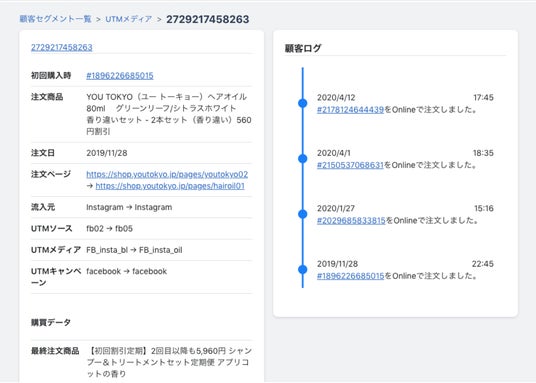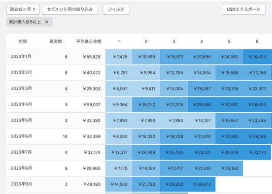 顧客セグメント機能で作成したリスト別に、LTVの数値をダッシュボードで確認できます。