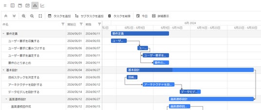 それぞれのタスクに親子関係や依存関係(先行・後続タスク)を設定できます。