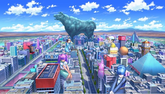 アニメ、ゲーム、メイドといったキャラクターをこよなく愛する街。レトロな電気ショップ風の建物とメカメイド像が立ち並び、ひときわ大きな牛モチーフの肉の万歳ビルがランドマーク。