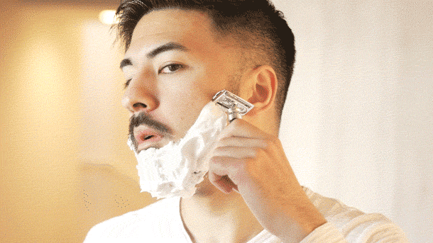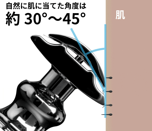 ヘッド部分は精密加工に適した亜鉛合金を使用し、自然に当てることで最適角度30~45度で肌に当たる。ヘッドのギザギザが皮膚を押して肌への刺激を軽減。軽やかな剃り味と肌へのやさしさを両立しました。