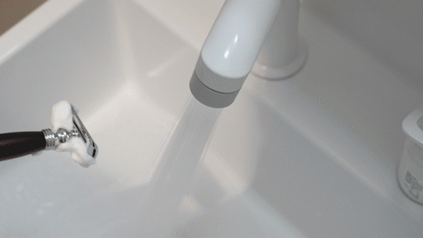 ヘッドの構造は水の通りがよく、剃ったひげや泡も一瞬で洗い流せる時短構造を実現。腐食に強い素材のため、水洗いし専用スタンドに立てておくだけでOK。