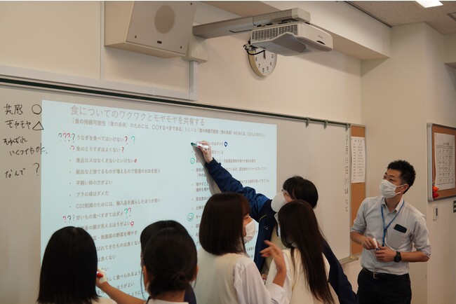 生徒が「Tカードみんなのエシカルフードラボ」の活動内容に触れ、エシカルフードの浸透に向けたリアルな課題と向き合うことで、授業テーマでもある「30年後の食の未来」を考えるヒントとなり、また「食について自身が消費者としてできること」について考えられることを目的に、今回の特別授業を計画しました。