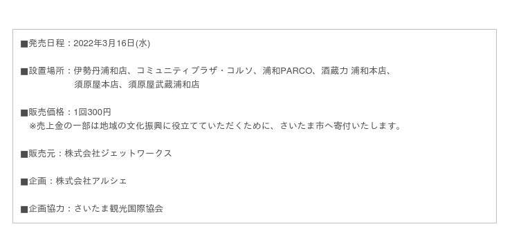 株式会社ジェットワークス(代表取締役:荒地功一)、株式会社アルシェ(代表取締役社長:中島祥雄)は企画協力により、3月16日(水)にご当地「浦和ガチャタマ」 第三弾を発売いたします。