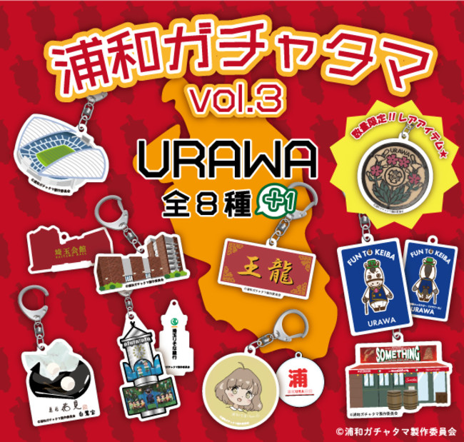 浦和レッズやうなぎの蒲焼発祥の地で有名な注目の街【浦和】の魅力をマニアックに追及したカプセルトイ「浦和ガチャタマ」。第一弾では浦和駅前のお買い物定番スポットである、「伊勢丹浦和店」、「コミュニティプラザ・コルソ」、「浦和PARCO」、浦和レッズサポーターの聖地「酒蔵 力」、地元密着のFMラジオ「REDS WAVE」、浦和を代表するソウルフード“スタミナラーメン”で有名な「娘々(にゃんにゃん)」、老舗鰻店「中村家(なかむらや)」、浦和に本社を構える「テレビ埼玉」の全8種類のラインナップ。