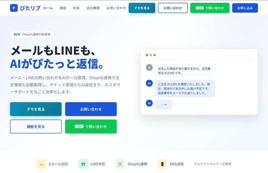 ぴたリプは、メール・LINE・SMS等の複数チャネルを統合し、AIによる返信生成やナレッジ活用を行うカスタマーサポート支援ツールです。