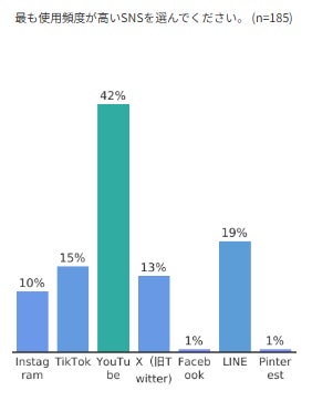 使用頻度が最も高いSNSもYouTubeが最多で、約4割の回答者が日常的に最もよく使っていると答えています。