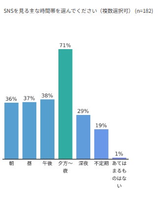 最も使われる時間帯は「夕方から夜」に集中しており、SNSが生活の一部として定着している様子が見られます。