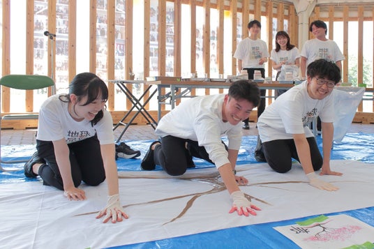 入社式では、先輩社員手作りの花道を新入社員が進み、弊社が地産材で製作し同パークに寄贈した来場者用のベンチに腰掛けた先輩社員が見守る中、新社会人としてのスタートを宣言。また、社員皆で桜に見立てた手形アートを制作したり、はままつフラワーパーク理事長の塚本こなみ氏にも「感動をお渡しするために」のテーマでご講演いただきました。この入社式の様子はインスタライブで配信、遠方の新入社員のご家族様にも、わが子の晴れ姿をご覧いただきました。当該施設で民間企業の入社式を行うのは初めての試み。地域社会に開かれた「はままつフラワーパーク」の魅力も感じられるイベントとなりました。