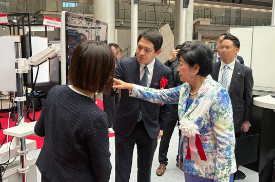 小池都知事には、「EUREKA」について、古代ギリシャの数学者アルキメデスが「わかったぞ!」という意味で発した製品名には、病の根源を見つけたぞ!という想いがこめられているのでしょうか、とご注目いただき、『EUREKA(TM)X』の実機もご覧いただきました。