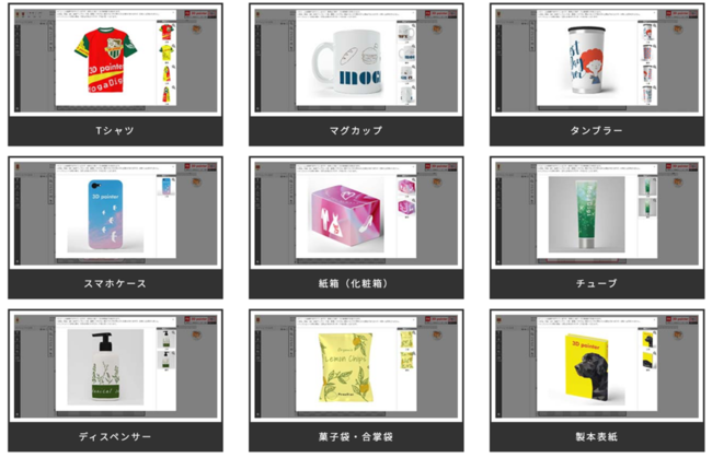 今回無料提供するアイテムは、Tシャツ、マグカップ、タンブラー、スマホケース、紙箱(化粧箱)、チューブ、ディスペンサー、菓子袋、合掌袋、製本表紙になります。
