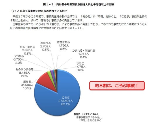 東京消防庁のデータでは高齢者の救急搬送の8割が「転ぶ事故」と言われています。