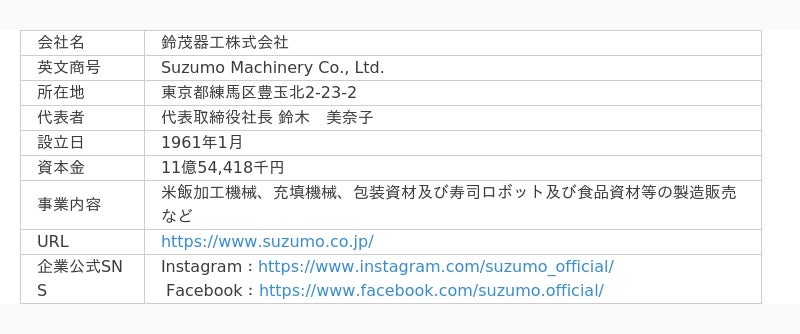 1981年に世界初の寿司ロボットを開発し、寿司の大衆化を実現したリーディングカンパニーです。米飯加工ロボットにおいて国内外で高いシェアを占め、お寿司、おにぎり、丼ものなど、世界中の様々な食のシーンで幅広く利用されています。近年では、ご飯盛り付けロボットシェアNo.1(出典:富士経済:「2022 年版 ワールドワイドロボット関連市場の現状と将来展望」 米飯盛付けロボット 販売金額・台数 2021 年実績)を獲得や、「Fuwarica(ふわりか) GST-MRA」が、「第25回外食産業貢献賞(日本食糧新聞社主催)」を受賞するなど、業界でも注目を集めております。『食の「おいしい」や「温かい」を世界の人々へ』を掲げ、細分化する食に関するニーズをいち早く捉えて市場にご提案し、常に新しいフードビジネスを開拓する企業として躍進しています。