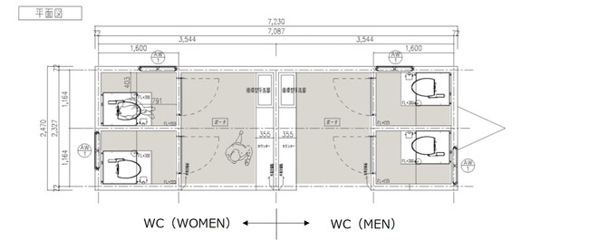 仕様:バイオトイレ4ケ、循環水型洗面器2ケ、LED照明、カウンター