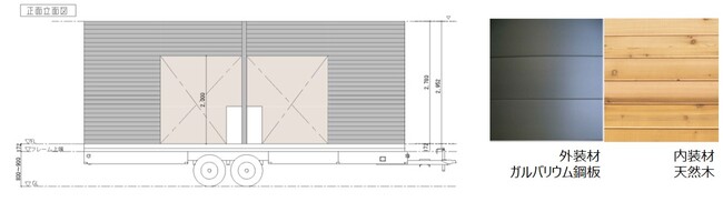 山の風景に溶け込むことを大切に、シンプルな形状でありながら、細かいディテールに配慮した勾配屋根のトレーラーとしてデザインしました。