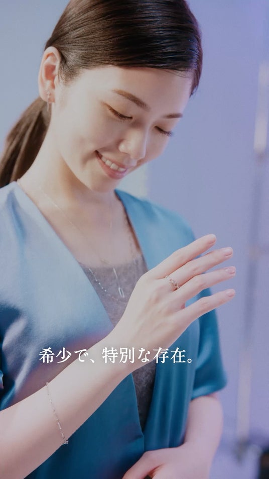 リングを着用している手を空にかざし、そのきらめきを眺める小芝さん。ラストシーンでは、自信に満ちた様子で微笑む小芝さんを通して、プラチナ・ウーマンが現代を生きる女性たちを応援するブランドであることを表現しています。