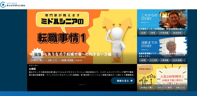 こうした背景を踏まえ、当社ではミドルシニアに社外に広がる多彩な選択肢を提供し、キャリア自律を支援する動画サービス「40代・50代のキャリアチャンネル」を2023年1月にリリースいたしました。