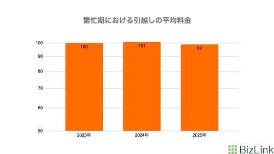 転勤者の引越しや社宅手配のコストや手間を解決する総務・人事向けプラットフォーム「テガルンPLAT」を運営する、株式会社ビズリンク(本社:東京都千代田区、代表取締役社長:早川 健)は、2025年引越し繁忙期における引越し平均料金の推移を発表致します。