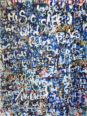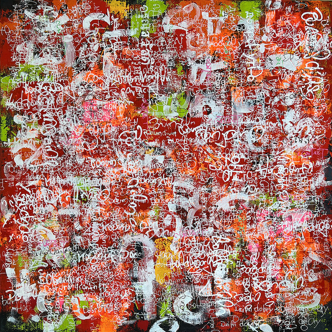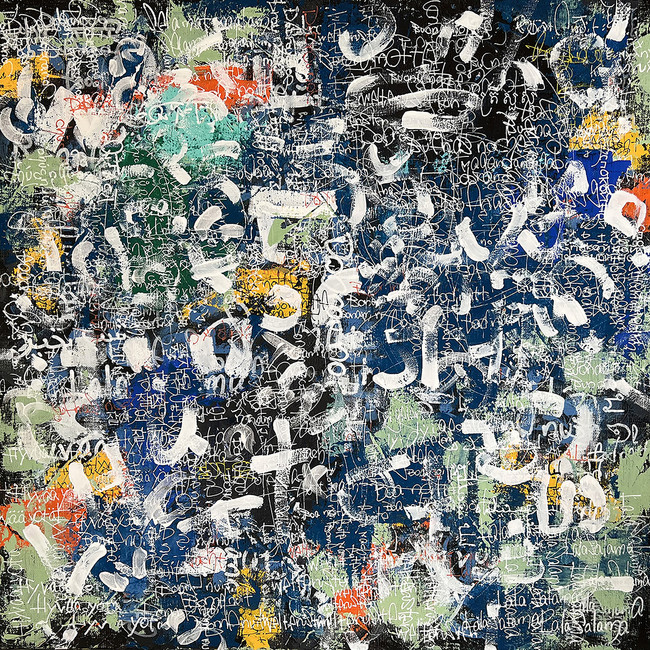 文字や言葉、色の重なりは、人と人との繋がりや想いを意味する。
