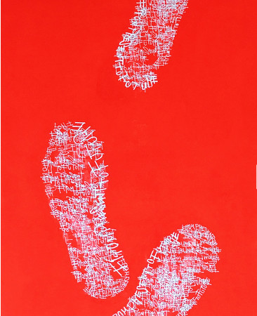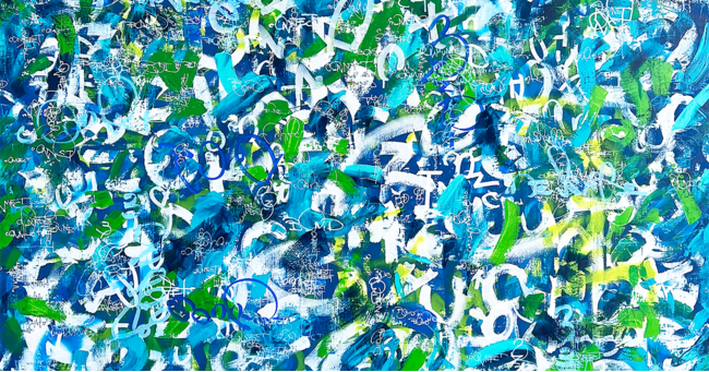 猪本大介はコミュニケーションの大切さを、文字や言葉を用い絵画として伝える。