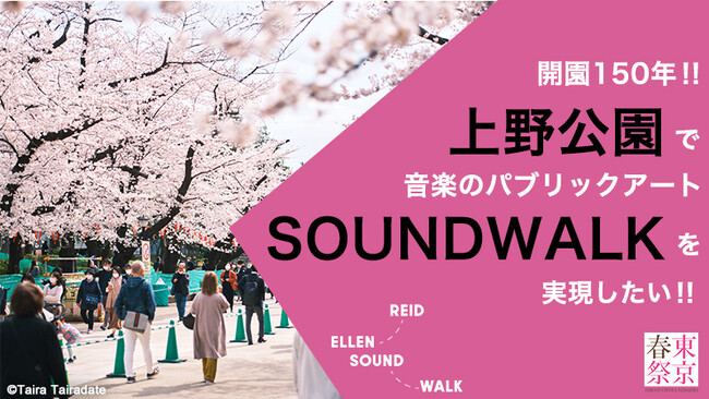 クラウドファンディングが成立した際には、日本初上陸のSOUNDWALKとして、東京・春・音楽祭が開催される上野公園を舞台に、エレン・リードの監修のもと、国内外で絶大な人気を誇り2023年には結成50周年を迎えるクロノス・クァルテットが手がける「50 for the Future」の作品を中心に製作。スマートフォン用の無料の専用アプリ内に日本語の上野公園用ページも用意され、多くの方に上野公園で新たな音楽散歩をお楽しみいただけるようになります。