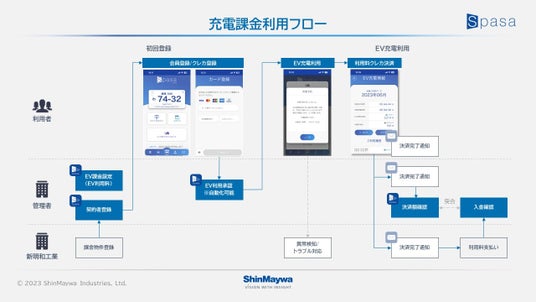 新明和工業株式会社(本社:兵庫県宝塚市、取締役社長 五十川龍之)は、このたび、EV向け充電課金機能を開発し、2024年1月から機械式駐車設備 操作支援ツール「新明和パーキングサポートアプリ『SPASA』」のオプション機能としての販売を開始します。今般の開発により、EV充電器のご利用者様向けに、充電予約から充電設備利用料金の支払いに至る全ての手続きが同アプリ上で完結する機能が揃いました。