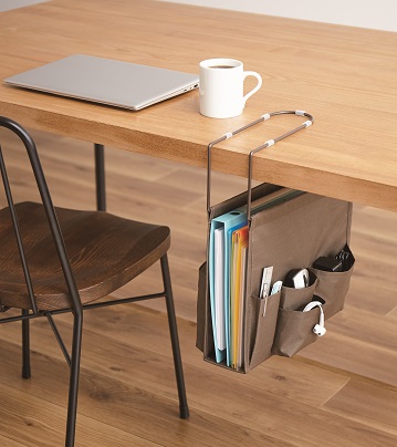 在宅ワークの仕事道具をテーブル下のデッドスペースにサッと片付け