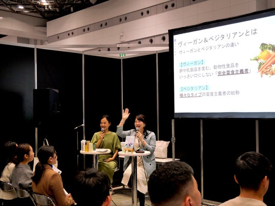 日本でもヴィーガンライフスタイルが取り入れやすくなってきており、「ミートフリーマンデー」やプラントベースの代替食品、ヴィーガンコスメなどが紹介されました。