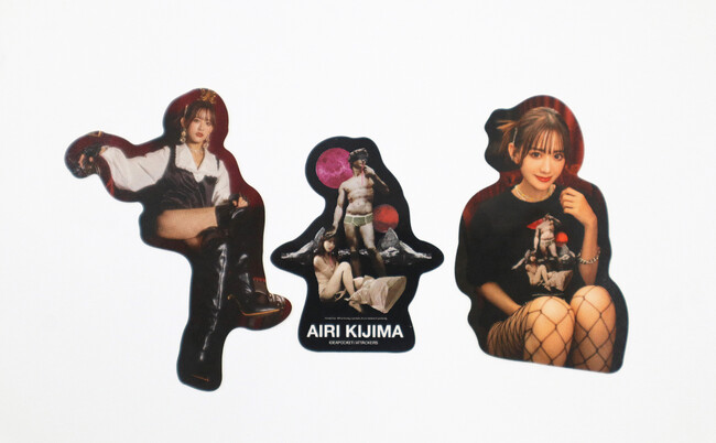 そのほか、今回新たに、キービジュアルの女優写真や、Tシャツのデザインになったイラストを使用したステッカーとアクキーが販売されることに。