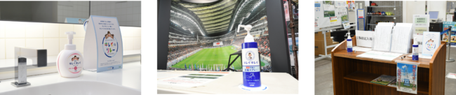 施設内各所に『キレイキレイ』ブランドのハンドソープや手指消毒剤などを設置し、会場にお越しのお客様および、選手等関係者にご自由にお使い頂くと共に、施設運営スタッフの方に清潔衛生環境に配慮した行動を実践して頂きます。