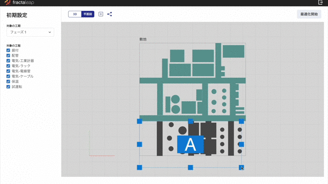 スケジュールと連動する形で、装置の据え付けなどを視覚的に表現