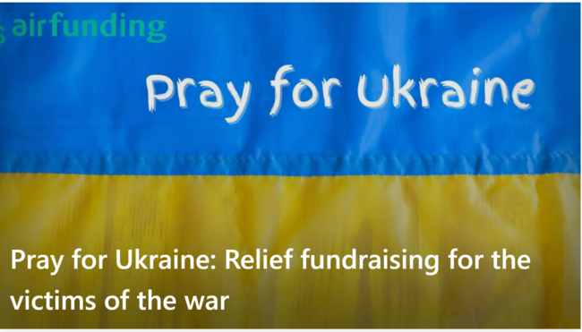 日本語訳:「Pray for ウクライナ|戦争被害者のための救援資金を募集」