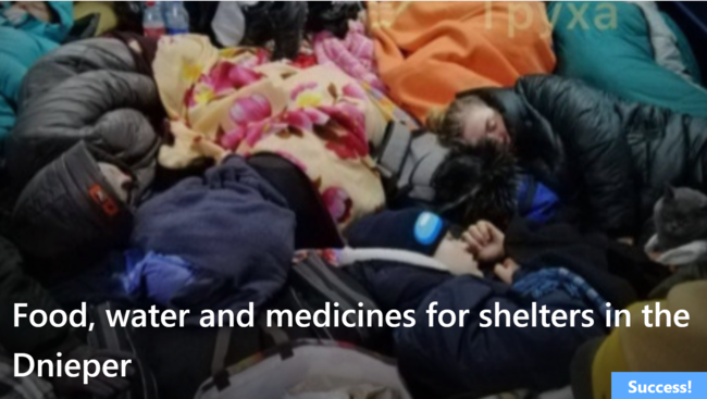 4. プロジェクト名:Food, water and medicines for shelters in the Dnieper