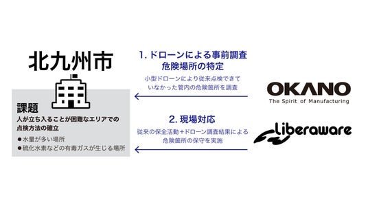 当社と屋内産業用小型ドローン事業等を展開するLiberawareは、2024年9月に資本業務提携を結んで以来、これまでドローンを活用した点検やDXソリューションの提供に関する取り組みを進めて参りました。北九州市による今回の全国特別重点調査では、下水道管の健全度を効率的に把握できる調査方法の確立を目指します。