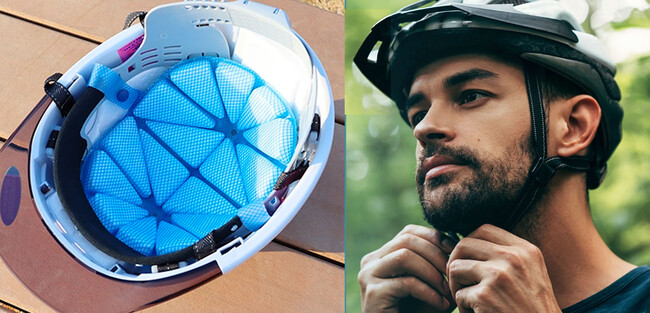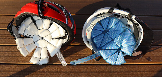 ヘルメットや帽子の中の熱を下げることのできるSUO 256 ICE METとSUO 256 ICE CAPは、頭部の熱を下げ、炎天下での仕事も自転車走行も涼しく快適に過ごせるアイテムです。