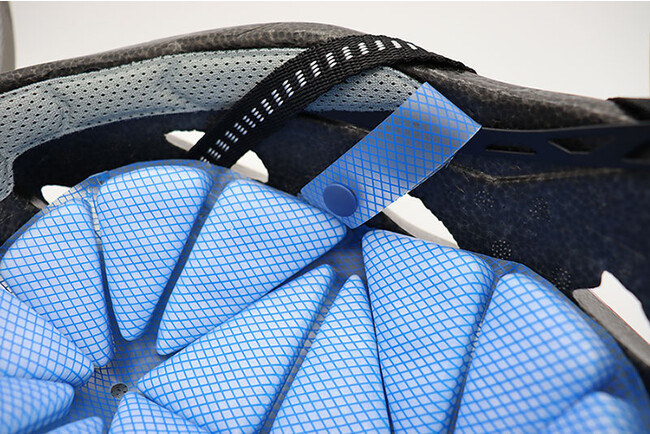 取り付け方はとても簡単で、ヘルメットの内側にスナップボタンで楽に取り付け、取り外しが可能です。