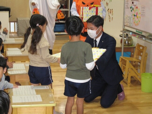 本年度は、こども達に少しでも喜んでもらえる様、当社からのクリスマスプレゼントとしてサンタクロースの衣装をまとった職員から絵本の寄贈を行います。