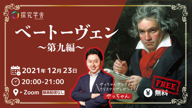 株式会社ワイズポケット〈探究学舎〉(本社:東京都三鷹市、代表取締役:宝槻泰伸)は、2021年12月23日に年末感謝祭として<オンライン授業>「音楽編」より「ベートーヴェン~第九編~」を無料で行います。