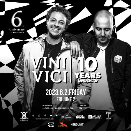 東光エンターテインメント株式会社(本社:東京都渋谷区)が運営するTK NIGHTCLUBは、2023年6月に開業6周年を迎えます。2023年6月2日(金)から4日(日)までの3日間にわたって、6周年アニバーサリーパーティーを開催します。本アニバーサリーパーティーは世界的人気DJであるVINI VICIとMr. BlackをスペシャルDJ、若者に大人気なラッパーWILYWNKAを招き、三日間限りの特別な空間を提供します。