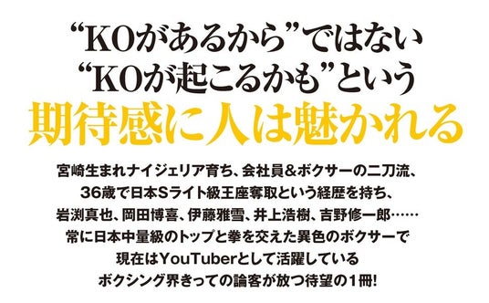 著者は現役自体の豊富な経験に基づいた独自のマインドセットで、極めてロジカルなボクシング解説をしたり、ラジカルな視点でボクシング業界の諸問題に問題提起したりする姿勢で、ボクシングファンの間でも定評があります。本書はボクシング界きっての論客による、新しい形のボクシング入門と言えるでしょう。