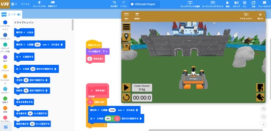 VEXcode VRは、ロボットをシュミレーションで動かし、自分が指示した「言語と動き」を照らし合わせていく。与えられたミッションをクリアするためにどのようなアルゴリズムを考えるかが大切。