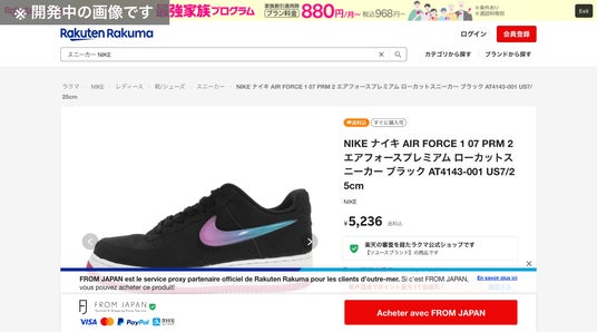 ※図2:「楽天ラクマ」サイト上に日本以外のIPアドレスからアクセスした際の商品ページ (フランス語例)