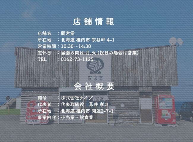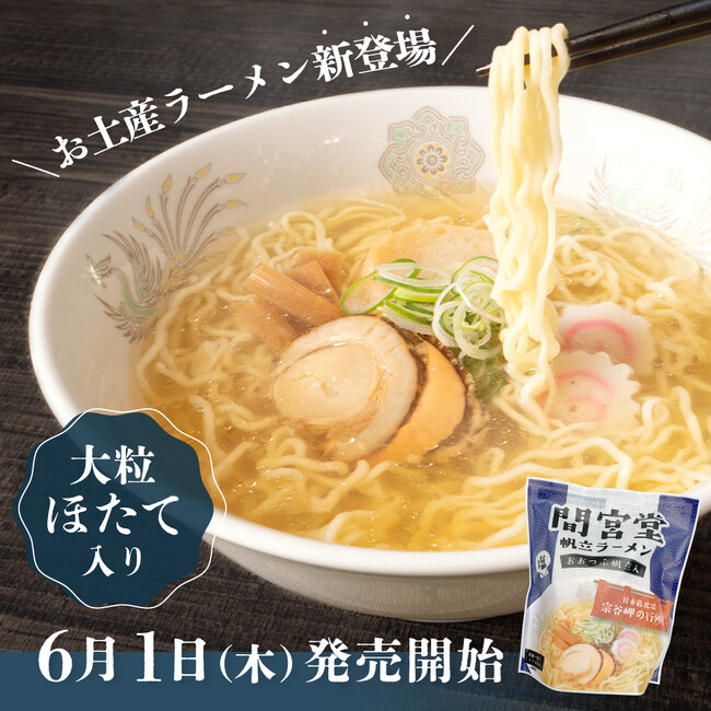 ECサイトでの販売開始に伴い、宗谷岬にある間宮堂の店舗と利尻島の利尻亀一店舗でも6月1日より『間宮堂帆立ラーメン』 単品(650円)のお取り扱いを開始しております。稚内、そして利尻島へお越しになった際のお土産におひとついかがでしょうか。